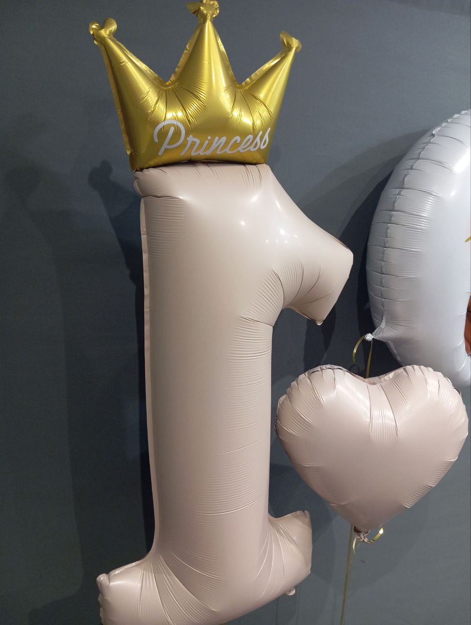 - 2. Шар из фольги цифра "1 PRINCESS с короной розовая", размером 117 см, надут гелием - 1 шт.