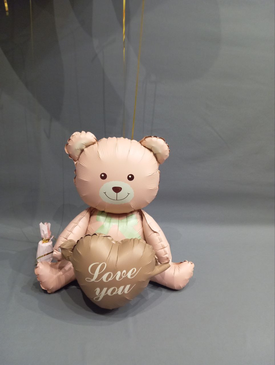 - 4. Шар из фольги Мишка с сердцем и надписью "Love you" размером 66 см, надут воздухом - 1 шт.